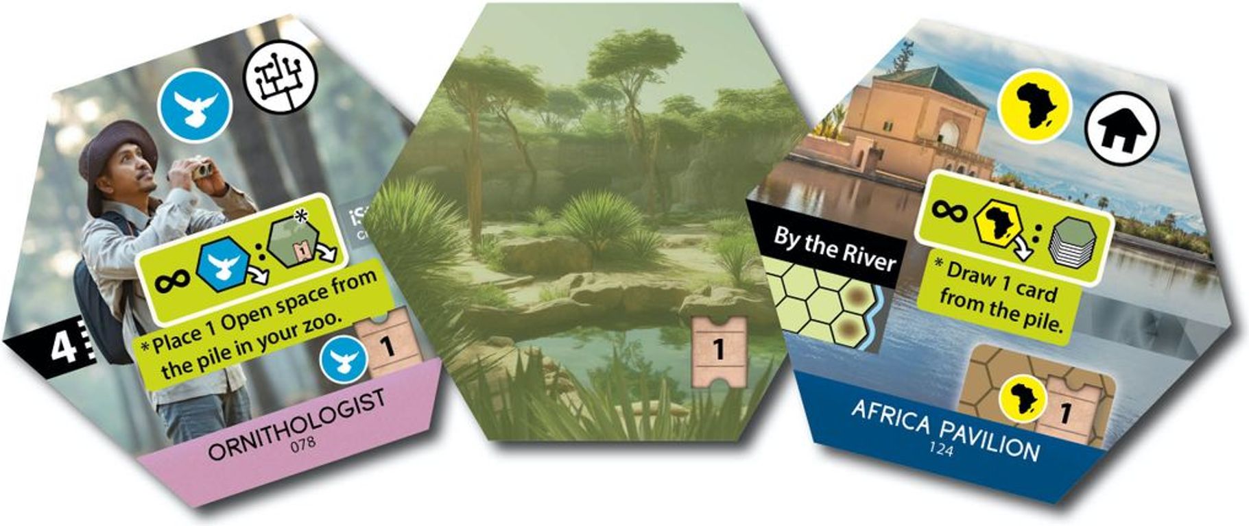 Ogni giocatore ha a disposizione un set di quattro carte azione per gestire il proprio gioco, e la potenza di un'azione è determinata dallo slot attualmente occupato dalla carta. Una di queste carte ti permetterà di giocare a progetti e le altre tre ti permetteranno di giocare con animali di un habitat specifico: foresta, roccia o acqua.